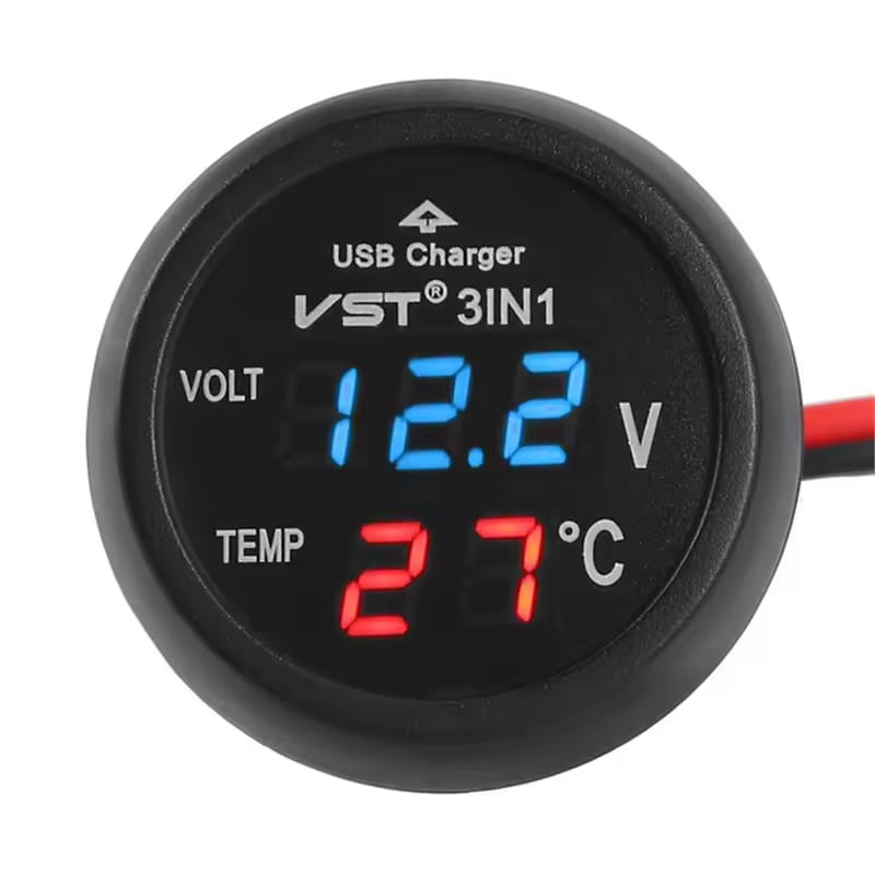 - Functions: Voltmeter + Thermometer + USB Charger